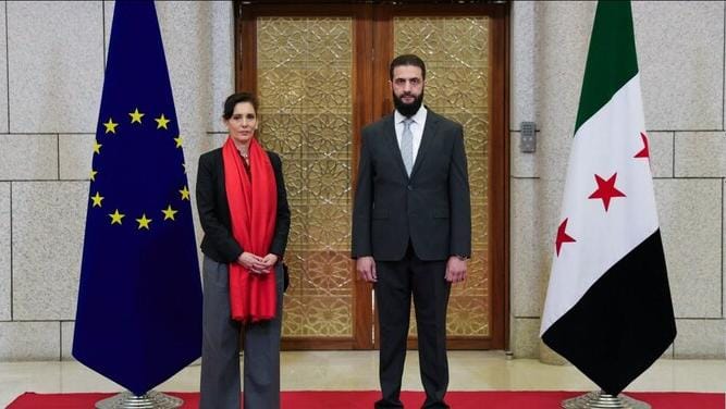 Syrian state news agency SANA published images of Lahbib with the country’s new leader Ahmed Al-Sharaa, reporting he was meeting with “a delegation from the European Commission” headed by the EU official.