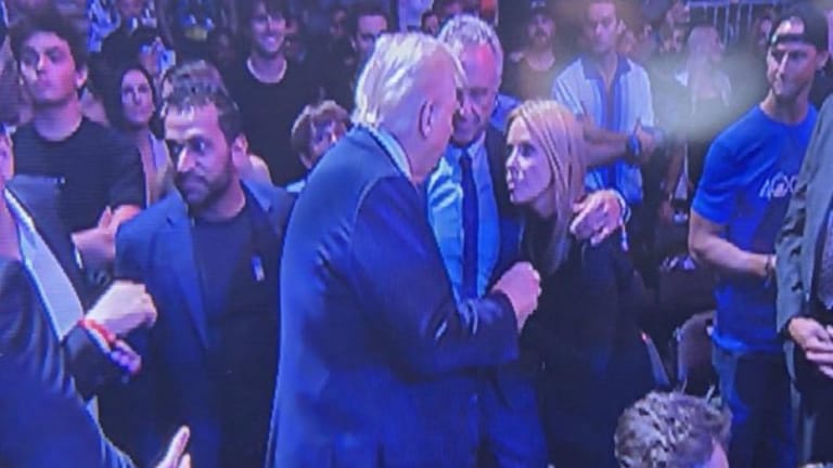 Hines pursed her face and flitted her hand in the wind as Trump brushed on, making his way to greet supporters and UFC host Joe Rogan.