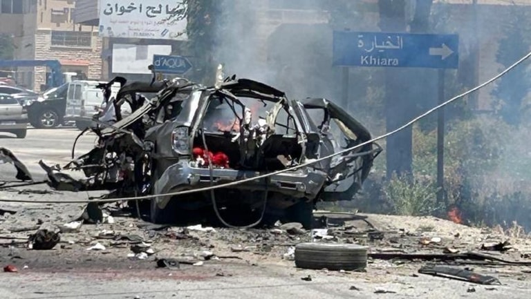 An Israeli enemy drone targeted a car near the Lebanese town of Khiara in West Bekaa.