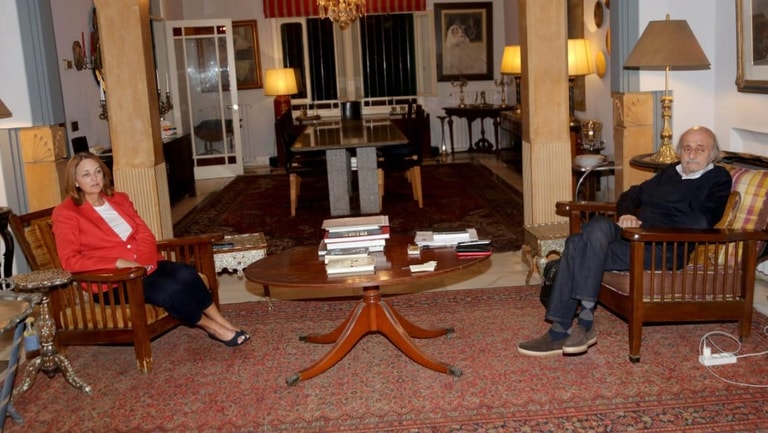 Former Progressive Socialist Party leader Walid Jumblatt received US Ambassador to Lebanon Lisa Johnson in Clemenceau, accompanied by embassy advisor Fadi Hafez.