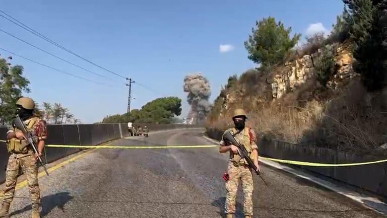 Footage documented the moment where members of the Lebanese Army detonated unexploded munitions in the Aaraiya - Mount Lebanon, shortly after Israel targeted a van in the region.