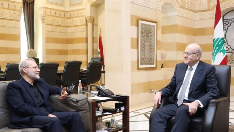 Caretaker Prime Minister Najib Mikati is currently meeting with Ali Larijani, senior advisor to Iran's Supreme Leader, at the Grand Serail in Beirut.