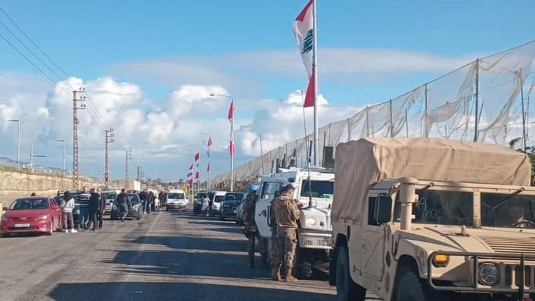 A group of people from Naqoura entered the town after gathering at the Hamra - Biyyadah point south of Tyre to check on their homes that were destroyed as a result of the aggression, after receiving permits from the Lebanese Army.