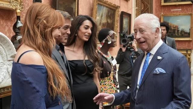 وقد نشرت الحسابات الرسمية للعائلة المالكة مقطع فيديو من الحفل، ظهر فيه الملك وهو يتحدث مع جورج وأمل. وجاء في التعليق: "اليوم، كان لفائزي جوائز "كينغز ترست" وسفرائنا من المشاهير شرف حضور استقبال خاص مع مؤسس المؤسسة الملكي، جلالة الملك، في قصر باكنغهام. هذا الحدث المميز جاء للاحتفال بإنجازاتهم المُلهمة قبيل حفل توزيع الجوائز غداً".