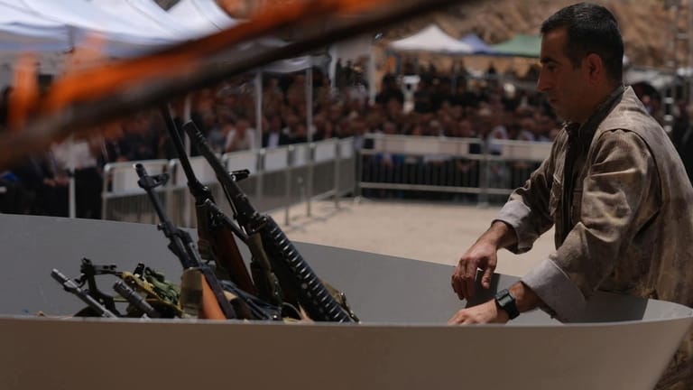 بدأ مقاتلو حزب العمال الكردستاني تسليم السلاح وحرقه، خلال مراسم رمزية أقيمت في مدينة شمالي العراق، في أول خطوة ملموسة نحو نزع السلاح الذي تعهد به الحزب في إطار عملية سلام مع تركيا.