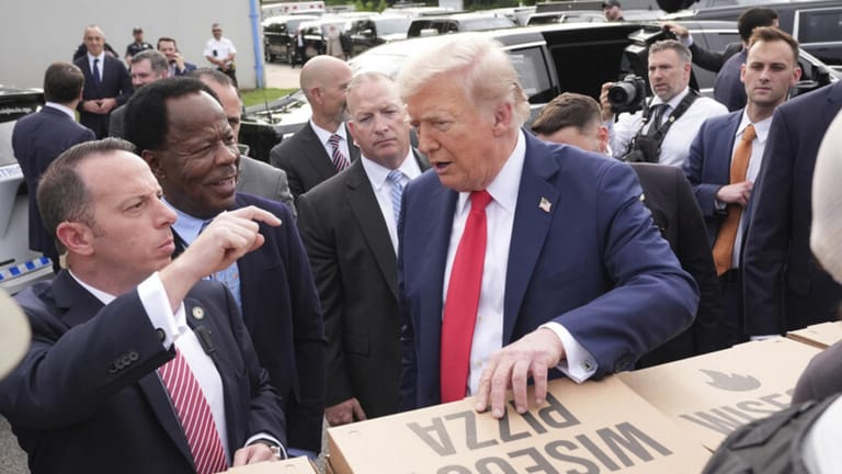 بالفيديو: ترامب يُقدّم البيتزا والهمبرغر