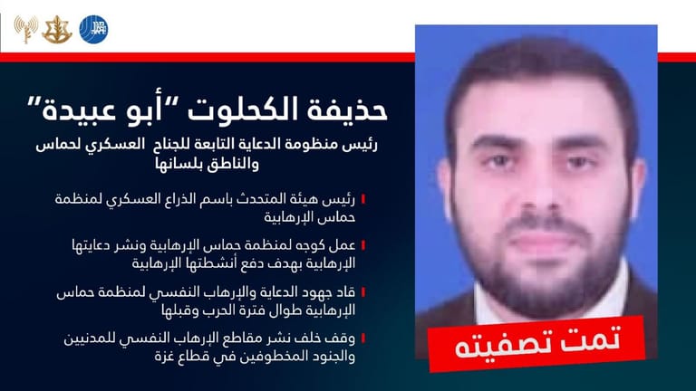 نشر الجيش الإسرائيلي فيديو لحذيفة الكحلوت المسمى "أبو عبيدة" بلا الكوفيّة التي اشتهر بها في إطلالاته.