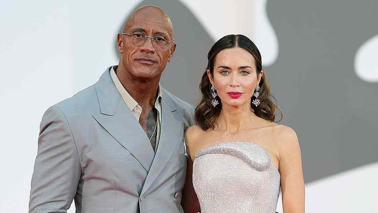 استعرض الممثل الأميركي دواين جونسون، البالغ من العمر 53 عامًا، أناقته مرتديًا بدلة باللون اللبني، بينما ظهرت إيميلي بلانت Emily Blunt مرتدية فستاناً ضيقاً مكشوف من الصدر، بينما تركت شعرها منسدلاً على كتفيها وظهرها.