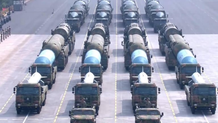 وقال معلّق البث: "يمر أمامنا أول رتل من الصواريخ المزودة برؤوس نووية. وللمرّة الأولى، تُعرض صواريخ جينجلي-1 التي تُطلق من الجو، وصواريخ جولانغ-3 الباليستية العابرة للقارات التي تُطلق من الغواصات، وصواريخ دونغفنغ-61 البرية العابرة للقارات، وصواريخ دونغفنغ-31 البرية العابرة للقارات معًا".
