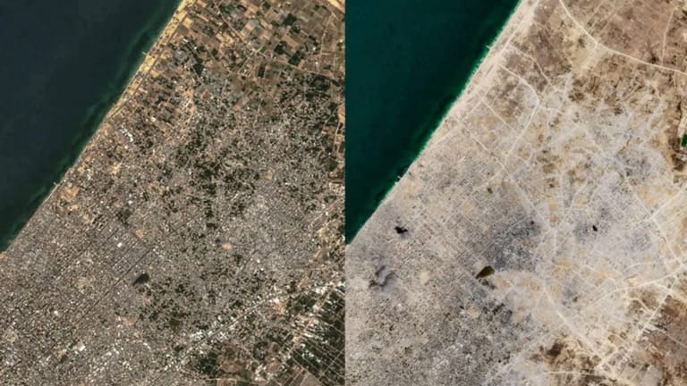 في الصورة الثانية، التقطت الأقمار الصناعية مشاهد من يوم 11 أيلول 2025 تكشف حجم الدمار الهائل الذي حل بالقطاع بعد ما يقارب عامين على الحرب.