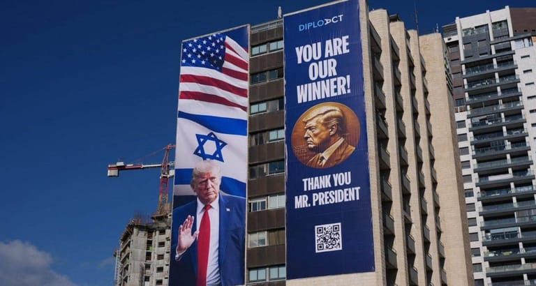 في ظلّ الاستقبالات في إسرائيل للرئيس الأميركي دونالد ترامب، بعد تمكّنه من إنهاء الحرب المستمرة منذ 7 تشرين الأوّل 2023، برزت إحدى اللوحات المرحبة به.