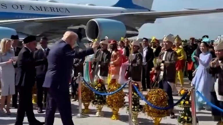 وصل الرئيس الأميركي دونالد ترامب إلى العاصمة الماليزية للمشاركة في أعمال قمة "آسيان"، وانتشر فيديو عبر مواقع التواصل الإجتماعي يُظهر ترامب أثناء رقصه خلال مراسم استقباله في كوالالمبور إلى جانب رئيس الوزراء الماليزي أنور إبراهيم.