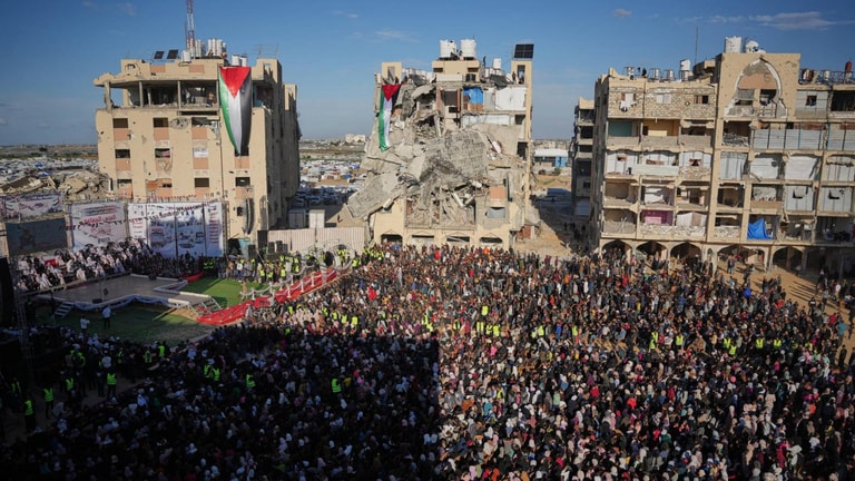 وسط ركام عامين من الحرب التي غيّرت ملامح غزة، تحدّى أكثر من مئة رجل وامرأة الدمار والفقد وأقاموا عرساً جماعياً في خان يونس، سموه «ثوب الفرح»، في احتفال قلّ نظيره أعاد شيئاً من الأمل لسكان القطاع المحاصر والمدمّر الذين فقدوا عشرات الآلاف من أحبائهم.