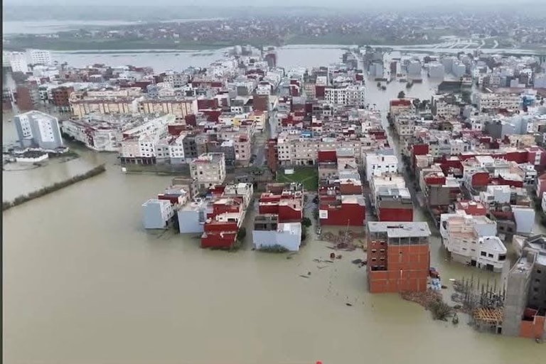 لقطات من مدينة القصر الكبير المغربية وقد غمرتها المياه والسيول.