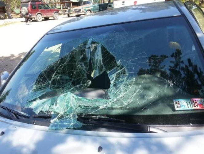 People walking by two hours later apparently spooked the bear and it broke out through the windshield.