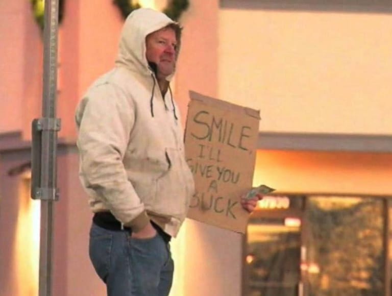 Free cash might be the last thing you'd expect to receive from someone standing with a cardboard sign in the middle of a road -- but that's exactly what smiling strangers got from a mystery man at an intersection in Parker, Colorado, on Monday.