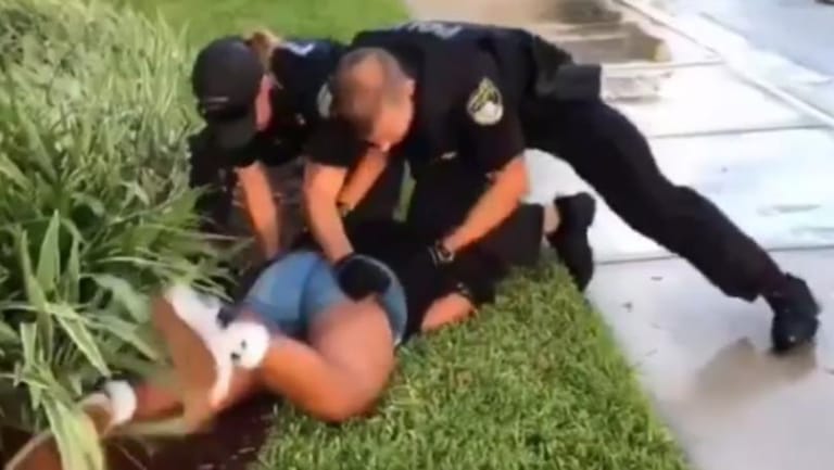 A Florida police department faces criticism after one of its officers was filmed punching a 14-year-old girl in her side as she was held to the ground.