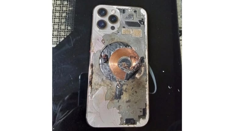 وجاء في الخبر المرافق لهذه الصور أنّها تعود لهاتف "آيفون" انفجر أثناء توصيله بالكهرباء لشحنه في منطقة المعادي في جنوب العاصمة المصريّة في آذار من العام 2021.