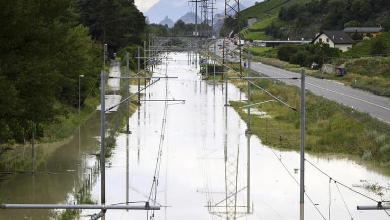 وإلى الشمال، فاض نهر الرون على ضفتيه في عدة مناطق في كانتون فاليه، مما أدى إلى غمر طريق سريع وخط للسكك الحديدية.