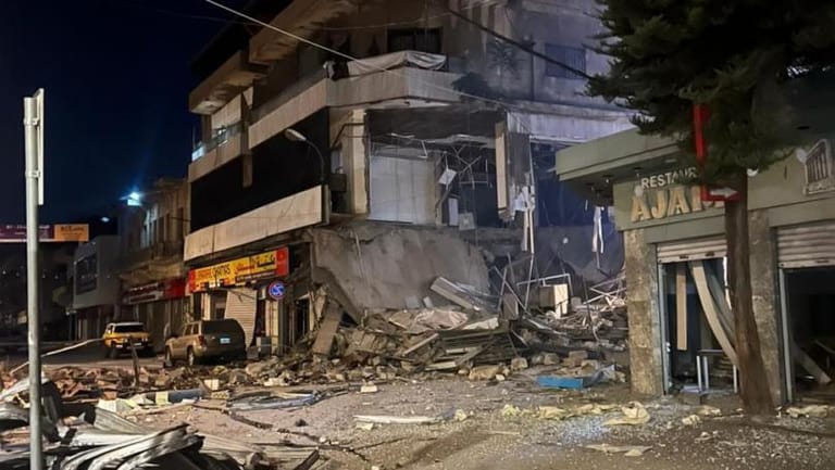 صورة لمركز القرض الحسن في سوق بعلبك بعد قصفه