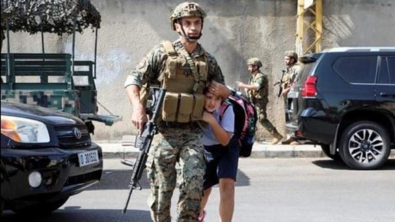 إحدى صور العام 2021 في وكالة "رويترز" تلك التي ترونها أعلاه. صورة لعسكري في الجيش اللبناني يحمي تلميذاً خلال أحداث الطيونة التي وقعت في 14 تشرين الأول، من ضمن 97 صورة اندرجت تحت هذا التصنيف.