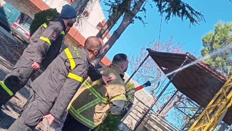 أخمد عناصر من الدفاع المدني حريقاً شبّ في أسلاك كهربائية وشجرة في محمرش - البترون.
