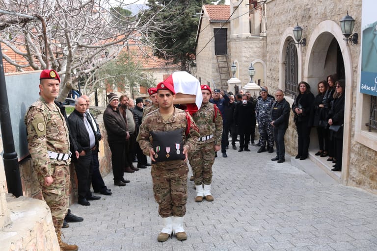 ثم جرت مراسم الدفن حيث انطلق موكب التشييع على إيقاع موسيقى الجيش اللبناني حيث سارت عائلة الراحل وراء النعش.