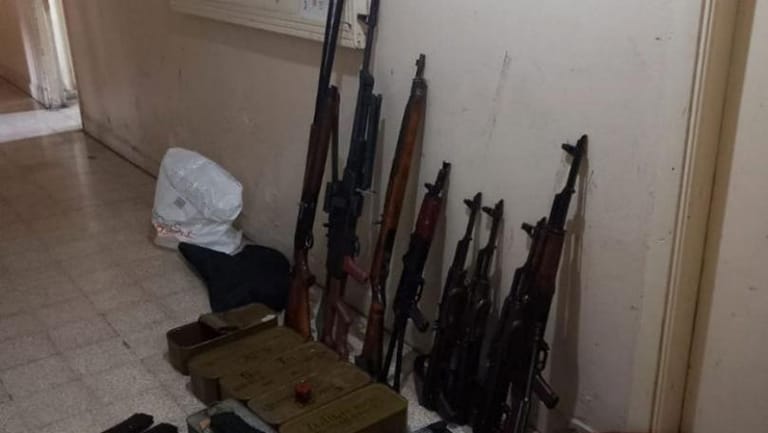 • دهم محل تجاري في مدينة بعلبك وضبط كمية كبيرة من الأسلحة والذخائر الحربية.