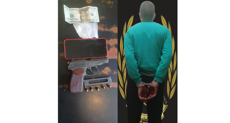 تمّ ضبط المسدّس وعلبة بلاستيكيّة بداخلها كميّة من مادّة الكوكايين.