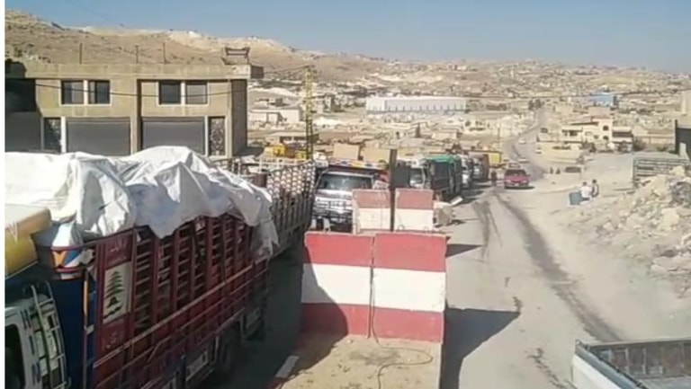 ورافقت دورية من مخابرات الجيش اللبناني، العائلات النازحة المغادرة طوعاً الى نقطة الحدود اللبنانية السورية عند معبر الزمراني.
