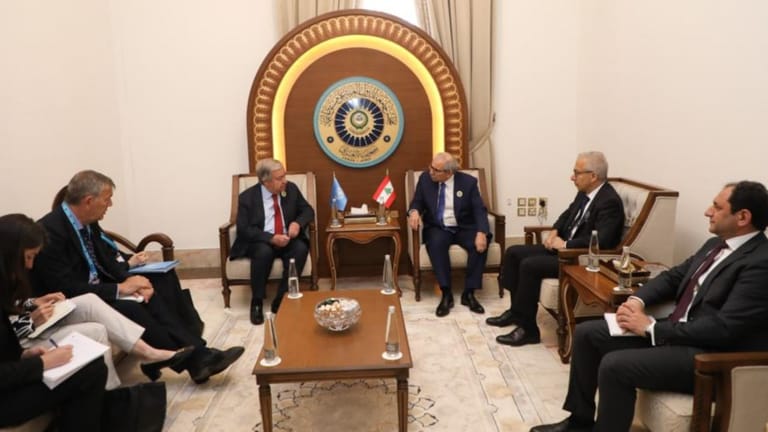 عقد رئيس مجلس الوزراء نواف سلام، على هامش القمة العربية الرابعة والثلاثين المنعقدة في بغداد، اجتماعًا مع الأمين العام للأمم المتحدة أنطونيو غوتيريس، تمّ خلاله البحث في تطورات الوضع في لبنان والاعتداءات الإسرائيلية المتواصلة على الأراضي اللبنانية.