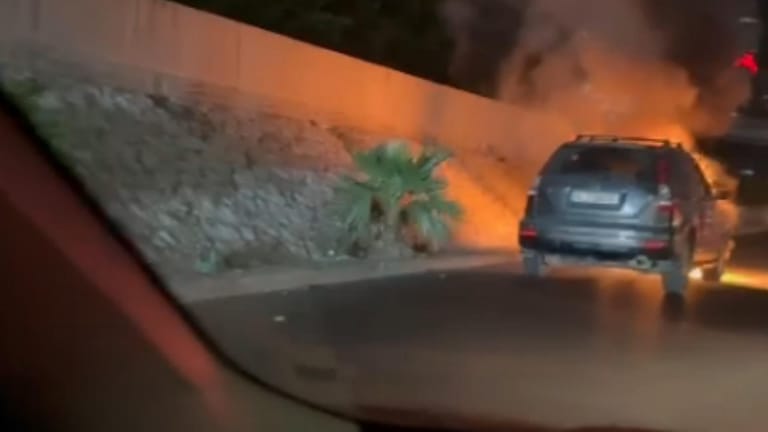 فيديو يظهر إحتراق سيّارة على طريق جونية المؤدّي إلى بيروت بعد جسر فؤاد شهاب.