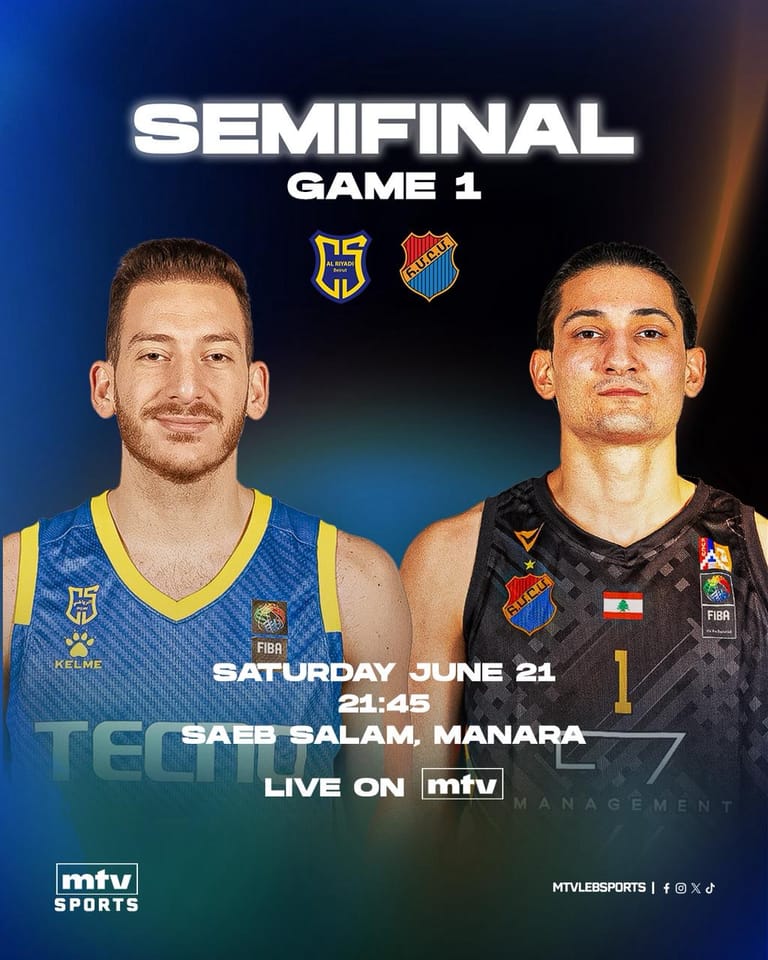 ترقبوا المباراة الأولى نصف النهائية بين الرياضي وهومنتمن من "ديكاتلون" بطولة لبنان لكرة السلة الساعة 9:45 مساءً مباشرةً عبر mtv