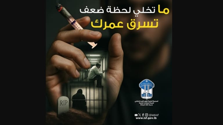 كتبت قوى الأمن الداخلي عبر حسابها على "أكس": "المخدرات ليست حلًا... بل دمار شامل ينهي الأحلام ويهدد الأمن".