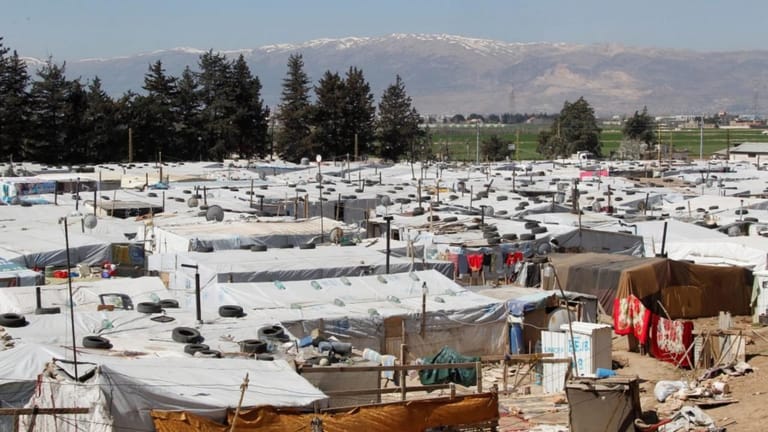 في السهول الخصبة بين نهر العاصي ومستشفى الهرمل الحكومي، وعلى بُعد كلم واحد من موقع وطى القاموع الأثري، يرتفع مشهد لا يشبه شيئًا من بؤس المخيّمات السورية في لبنان.
