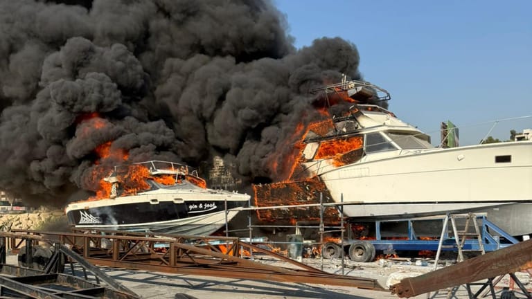 اندلع حريق هائل في يخت بمرفأ الضبية.