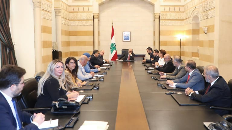 استقبل رئيس مجلس الوزراء نواف سلام في السراي النائب محمد سليمان مع وفد من العشائر العربية.