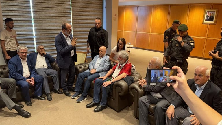 وقال جورج عبدالله فور وصوله: "من المعيب للتاريخ أن يتفرج العرب على معاناة أهل فلسطين وغزة".