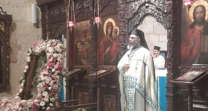 بعد قراءة الانجيل المقدس، ألقى الارشمندريت  يعقوب عظة هنأ فيها المؤمنين بالعيد ناقلا بركات ومعايدة البطريرك اليازجي، ثم تناول فيها معنى هذا العيد واهميته، عارضا لمفهوم الأيقونة واهميتها في الكنيسة الارثوذكسية، وشدد على "مسؤوليتنا كابناء الكنيسة بتصرفاتنا وايماننا واعتمادنا على شفاعة العذراء".