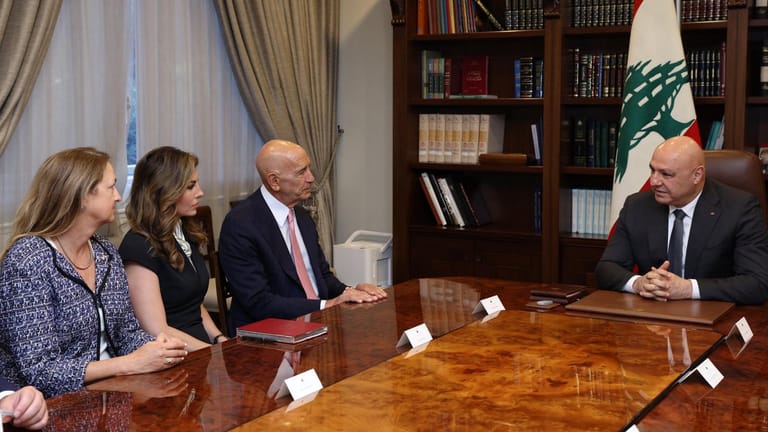 أكّد رئيس الجمهورية جوزاف عون أمام السفير الاميركي توماس برّاك ونائب المبعوث الأميركي للشرق الأوسط مورغان أورتاغوس أنّ "المطلوب الآن هو التزام الأطراف الأخرى بمضمون ورقة الإعلان المشتركة ومزيد من دعم الجيش اللبناني وتسريع الخطوات المطلوبة دوليا لإطلاق ورشة إعادة الإعمار في المناطق التي استهدفتها الإعتداءات الاسرائيلية".