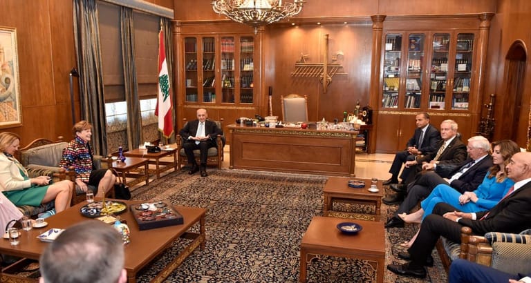 إستقبل رئيس مجلس النواب نبيه بري في مقر الرئاسة الثانية في عين التينة، الوفد الاميركي الموسع الذي ضم السيناتور جين شاهين، السيناتور ليندسي غراهام، عضو الكونغرس الأميركي جو ويلسون، السفير الاميركي في تركيا الموفد الرئاسي الى لبنان وسوريا السفير توماس براك، نائب المبعوث الرئاسي الخاص إلى الشرق الأوسط مورغان أورتاغوس، في حضور السفيرة لدى لبنان ليزا جونسون والمستشار الإعلامي للرئيس نبيه بري علي حمدان.