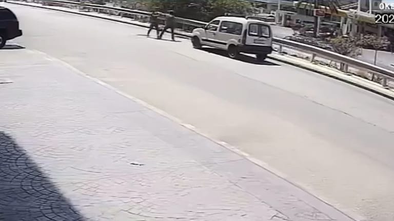 في حادثة غريبة، أظهرت كاميرات المراقبة رجلين أوقفا السيارة وترجلا منها للشجار خارجها ثم عادا الى السيارة وغادرا.
