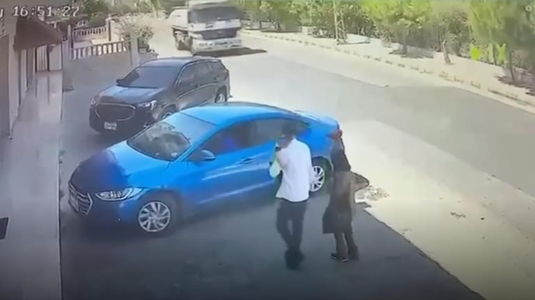 تتابعون في الفيديو المرفق لحظة اصطدام سيارة بشاحنة في القرعون.