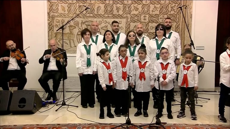 رسالة خاصة للبابا لاوون الرابع عشر، في القصر الجمهوري، من أطفال من ذوي الإرادة الصلبة بلسان فيروز: "هون السما قريبة".