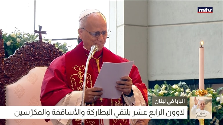 قداسة البابا لاوون الرابع عشر يتوجّه الى المشاركين في لقاء البطاركة والأساقفة والمكرّسين في بازيليك سيّدة لبنان في حريصا بالقول: "سلام المسيح".