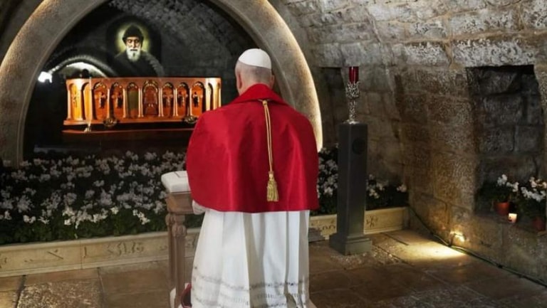 استكمالًا لزيارات البابا لاوون الرابع عشر إلى لبنان، شكّل اليوم الثاني محطة روحية بالغة الأهمية، إذ اختار أن يبدأ نهاره من دير مار مارون – عنايا، هذا الصرح الذي يحمل رمزية روحية عميقة للبنان بأسره، حيث ضريح القديس شربل الذي يجمع حوله اللبنانيين من مختلف الأديان والمغتربين والمؤمنين من كل أصقاع العالم.
