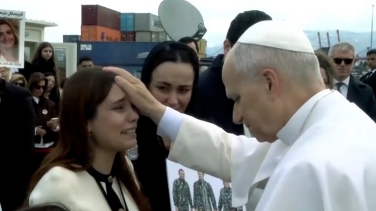 لحظاتٌ مؤثرة تجمع البابا لاوون الرابع عشر بأهالي ضحايا 4 آب في مرفأ بيروت وقد استمع إليهم وباركهم.