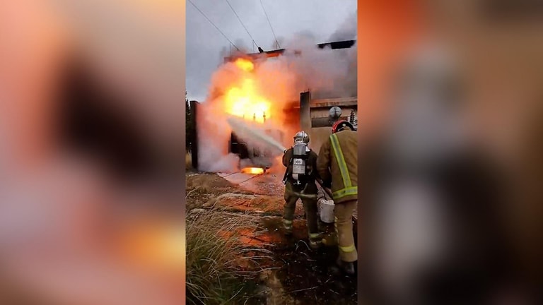 بالفيديو: إخماد حريق محول كهرباء في محاذاة خزانات نفط