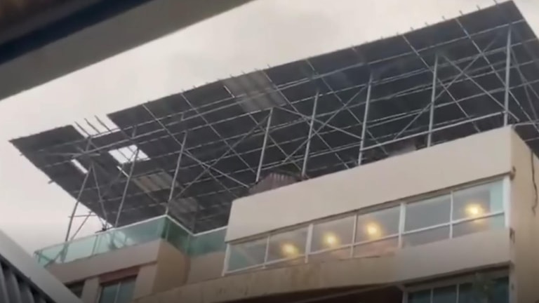 وتتابعون في الفيديو المرفق لحظة سقوط ألواح طاقة شمسية عن سطح أحد المباني في بيروت.