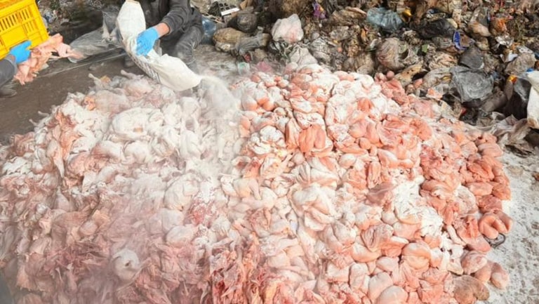 كذلك، تمّ ضبط أكثر من ثلاثة أطنان من الدّجاج غير المطابق للشّروط الصحّيّة، جرى تلفها من قبل مفرزة استقصاء البقاع في مطمرٍ عائد لبلديّة زحلة، وفقًا للمعايير الصحّيّة المعتمدة، وبحضور مندوب عن وزارة الصحّة، بناءً على إشارة القضاء المختص".
